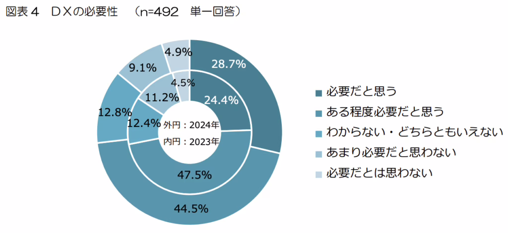 中小企業庁や中小機構の調査によると、多くの中小企業がDXの必要性を感じています。しかしながら、実際に導入している企業は決して多くありません。たとえば、以下のようなデータがあります。