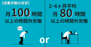 - 2〜6ヶ月の平均で月80時間を超える時間外労働