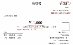 元の領収書に記載されていた金額・宛名・取引内容は原則変更しないことが大切です。もし再発行時に金額や宛名を修正する必要がある場合は、発行ミスとしての訂正扱いになるため、発行履歴を明確にしなければなりません。