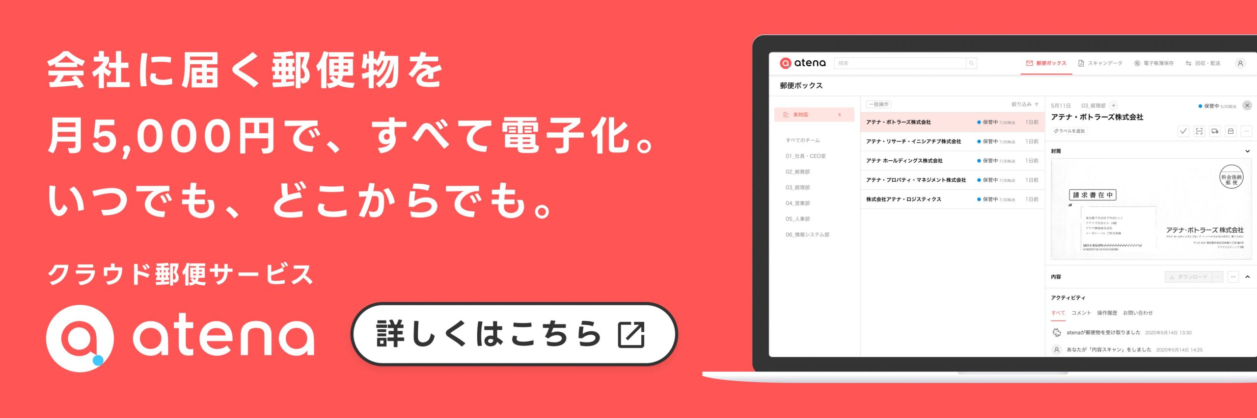 また、引き継ぎ時の資料作成などを円滑に行うためには、総務部門の業務負荷をできるだけ減らす工夫も重要です。そこでおすすめしたいのが、総務の業務効率化ツール「atena」。郵便管理など、煩雑になりやすい総務関連のタスクを効率化し、時間を有効活用できます。